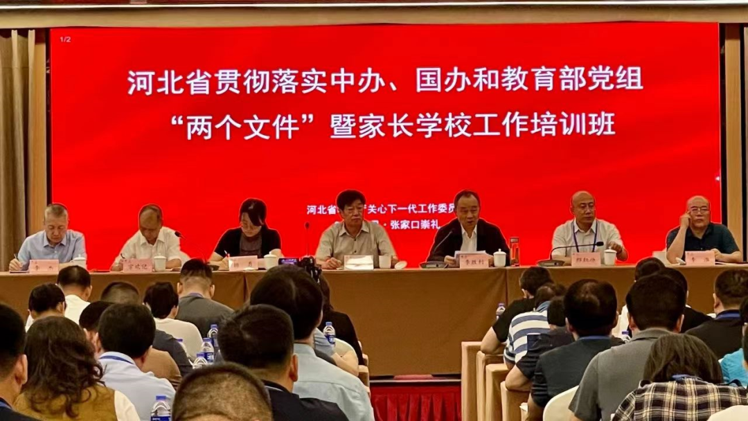 8月2日,河北省教育厅关工委贯彻落实中办、国办和教育部党组“两个文件”暨家长学校工作培训班在张家口崇礼圆满落幕。河北省各市县教育局关工委主任、秘书长共130余人参加。教育部关工委常务副主任杨贵仁出席并作首场报告,河北省教育厅关工委常务副主任李胜利出席并讲话,张家口市教育工委副书记邢积功致辞。河北省教育厅关工委副主任兼秘书长宗欢记主持。