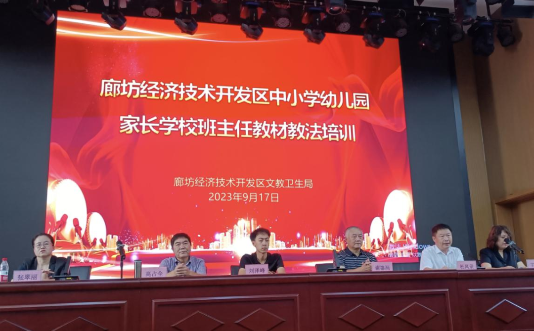 9月17日,廊坊市教育局家长学校班主任教材教法培训落下帷幕,本次培训为期一天半,共设香河县、永清县、开发区三个会场,参训班主任和德育主任600余人 。