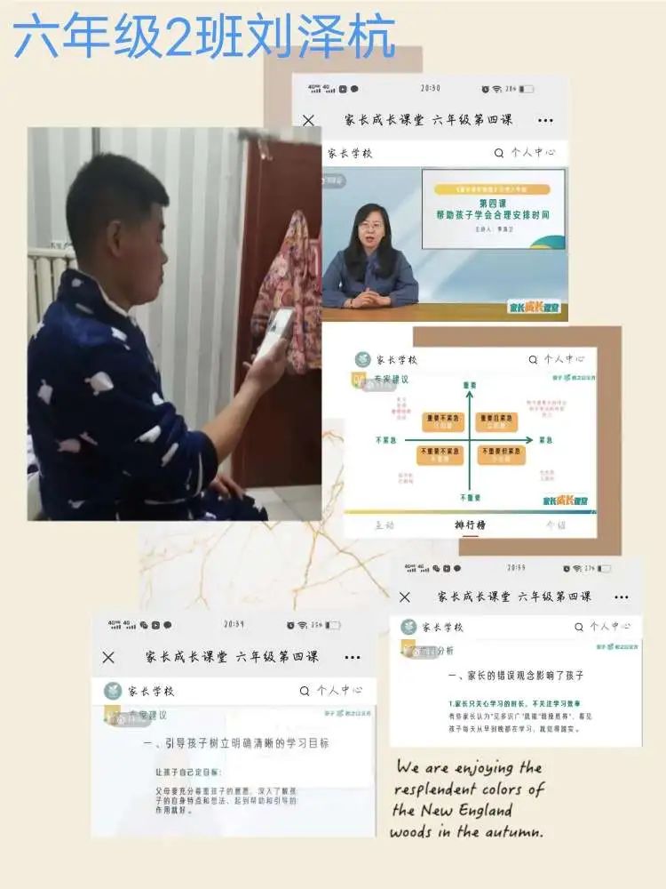 让孩子学会合理、自主地安排时间,不仅是保证孩子身心健康的重要条件,也是成才教育的一项基本训练。1月3日,六年级家长们共同学习家长学校第四课——《帮助孩子学会合理安排时间》。