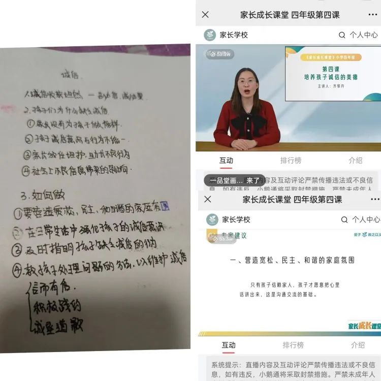 诚实守信是中华民族的优良传统,是当今社会需要大力弘扬的道德规范,关系到孩子一生的发展。四年级家长们深知其重要性,对这次课程进行认真学习。